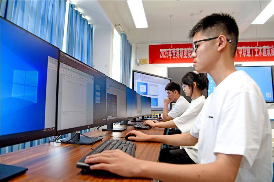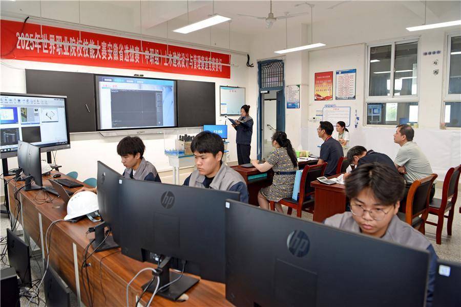 2025年6月29日云南配资,参赛选手在2025年世界职业院校技能大赛安徽省选拔赛(中职组)淮南经济技术学校赛点参加土木建筑设计与管理赛道比赛。当日,来自全省6所中职学校7支代表队选手参加2025年世界职业院校技能大赛安徽省选拔赛(中职组)土木建筑设计与管理赛道角逐。(陈彬 文/图)
